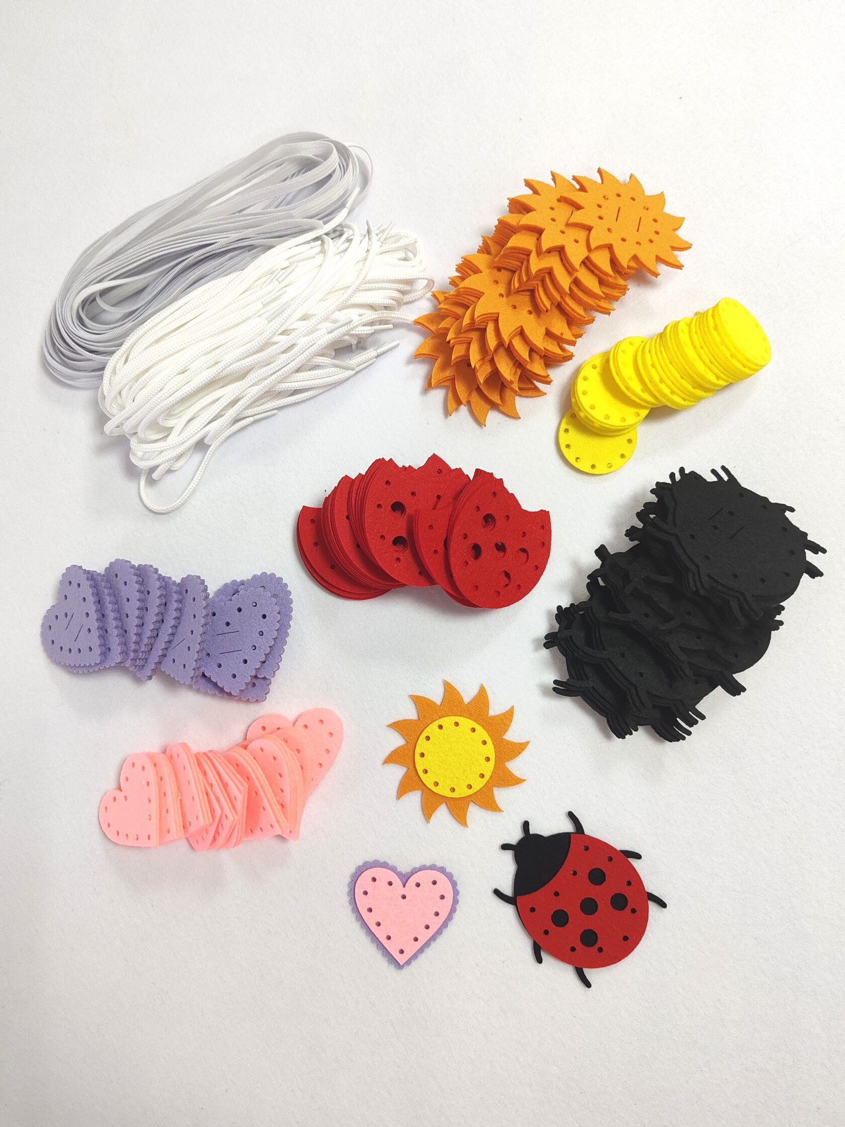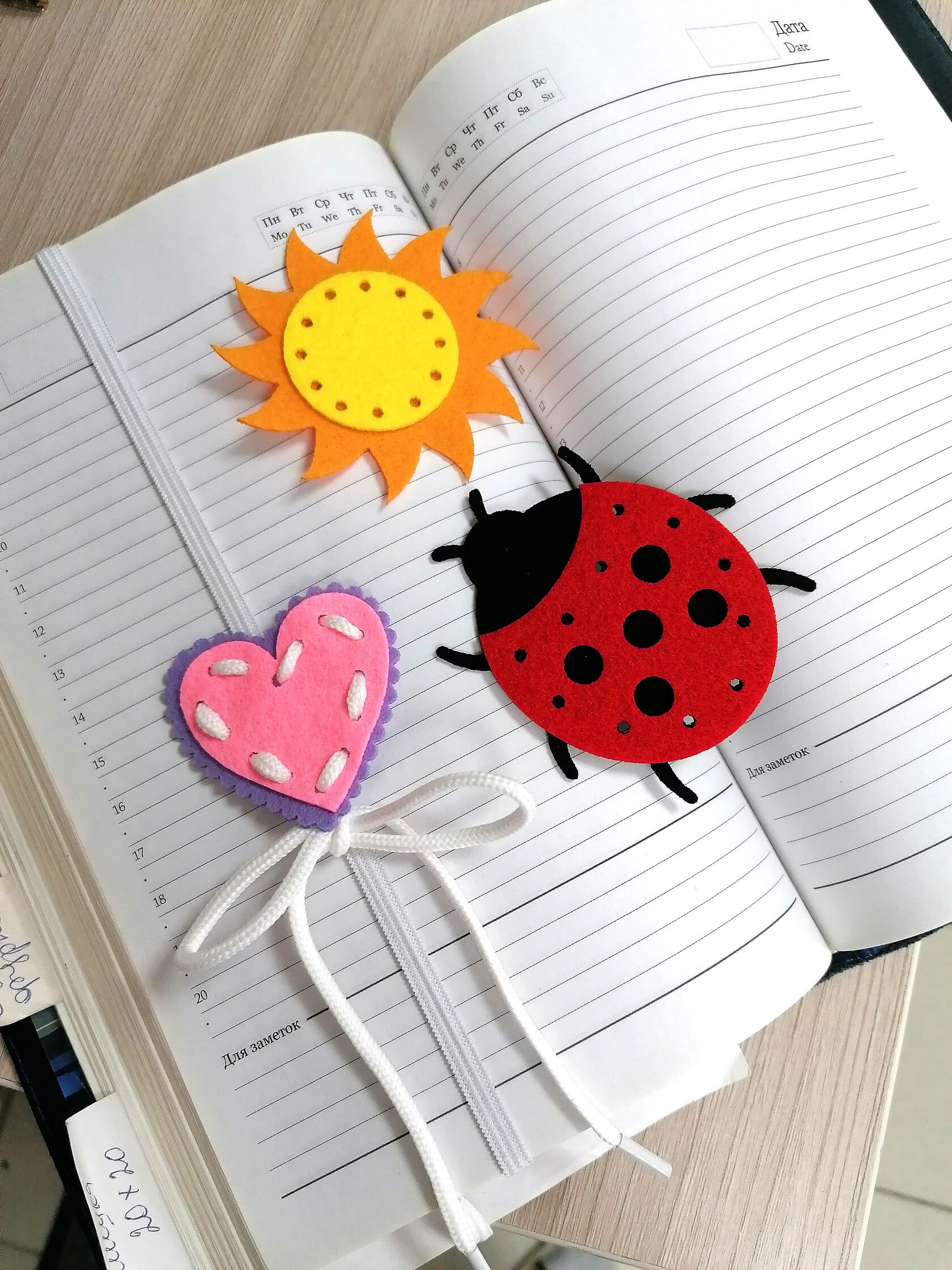 Цена за 1 закладку. Вы можете выбрать солнышко, сердечко или божью коровку. За доплату можем добавить в набор безопасные иглы (+10р/шт) и заменить шнурок на нитки, чтобы дети шили иголкой. Собственное производство. Возможно изготовление других деталей.