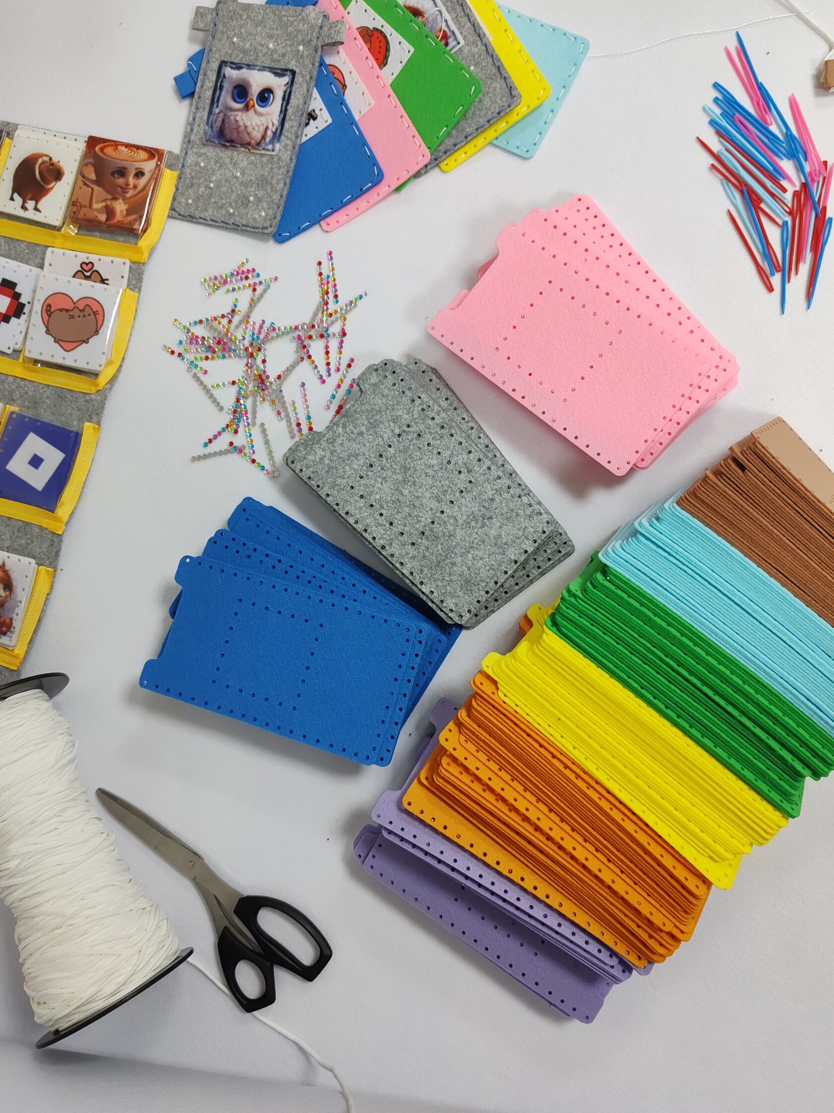 Наборы для творчества - это наборы жесткого корейского фетра премиум качества толщиной 1,2 мм для изготовления книжек, планшетов, аппликаций, кармашков в садик и тд. Корейский фетр известен высоким качеством: плотный, однородного состава, без проплешин (не просвечивает), не имеет "китайского" синтетического блеска. Благодаря этому ваше изделие прослужит долго и оставит неизменный вид даже при активном использовании.