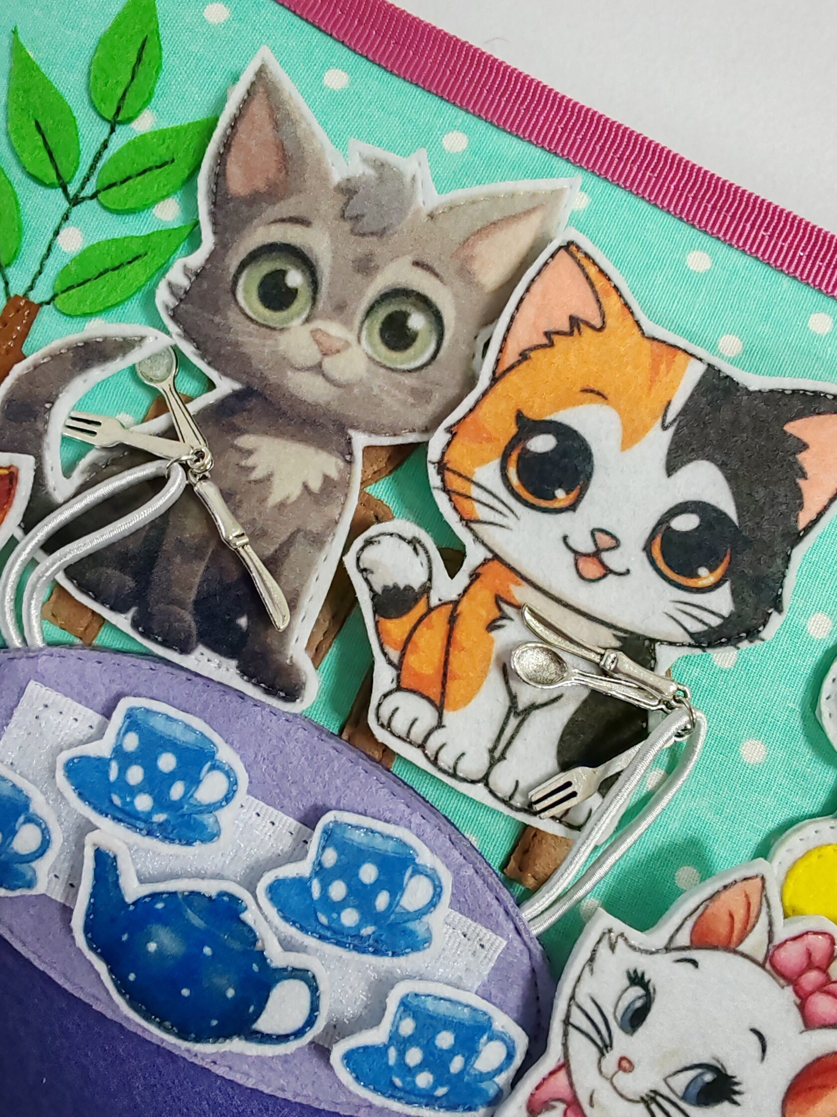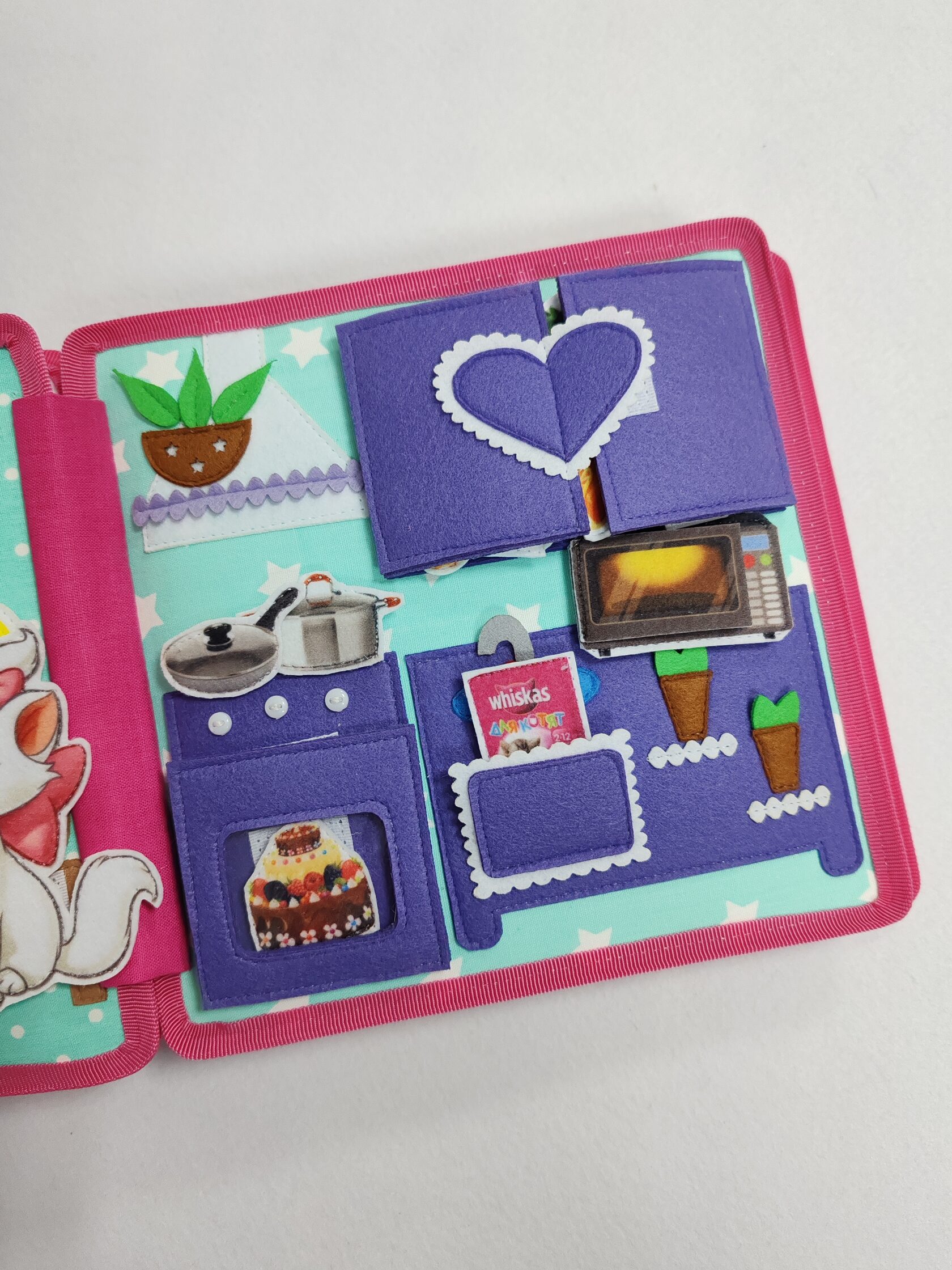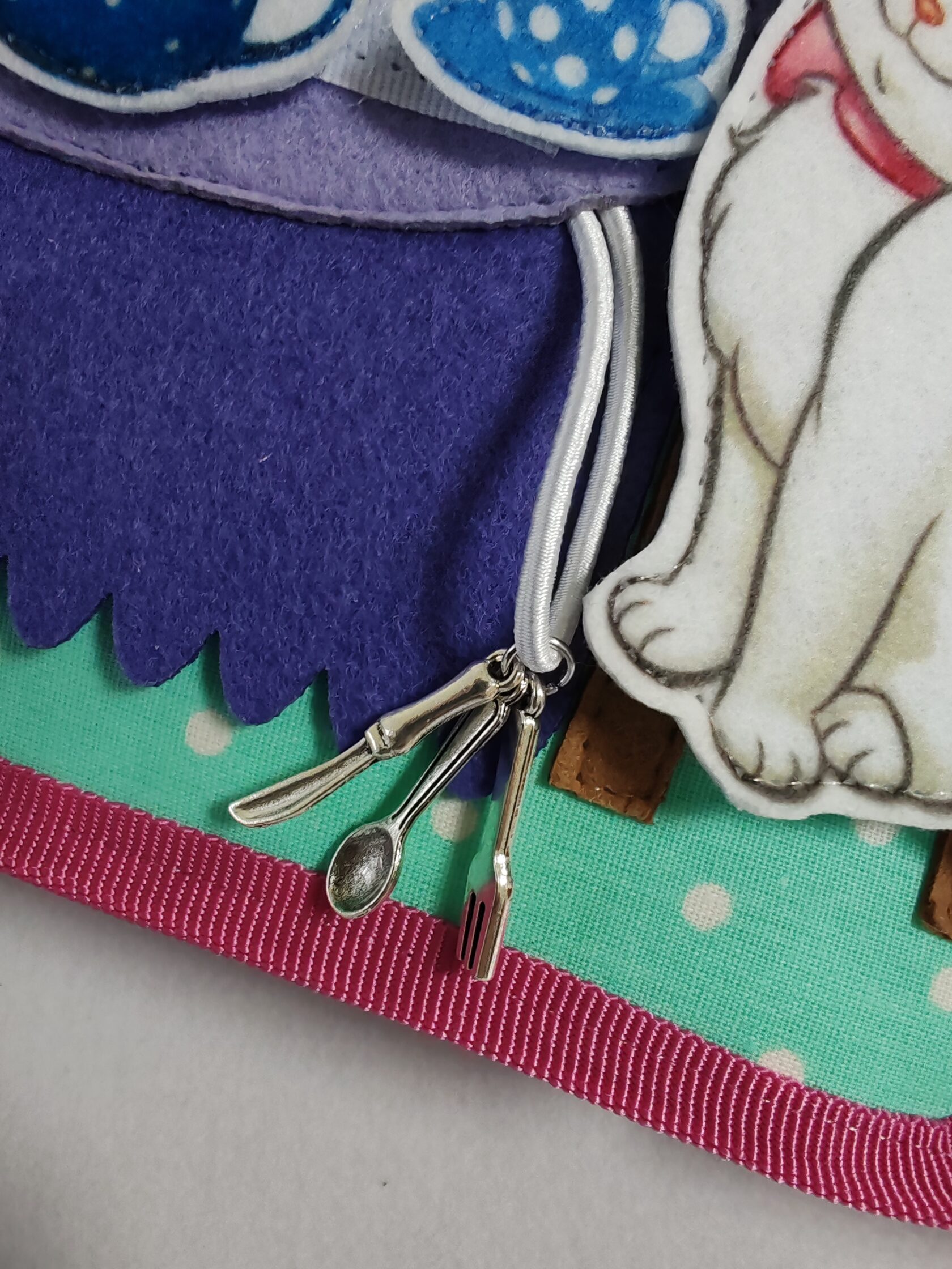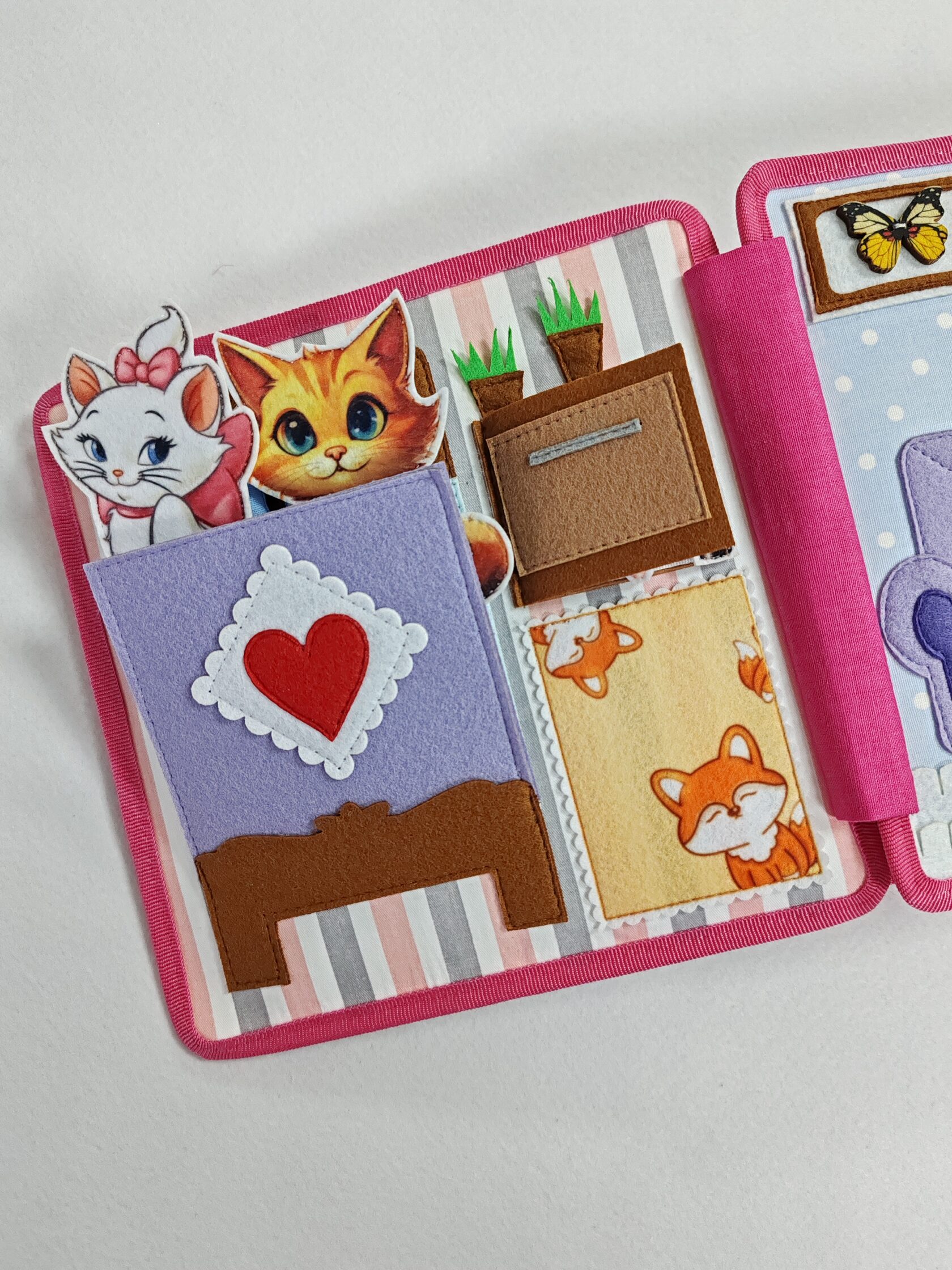 В неё вошли разнообразные игры: — шнурки — молнии — липучки — кнопки — пуговицы — кто в домике живет — сравнение большое/маленькое -и специально для девочек: безопасное зеркало и красная помада, чтобы быть маленькими принцессами и не брать помаду мамы))
