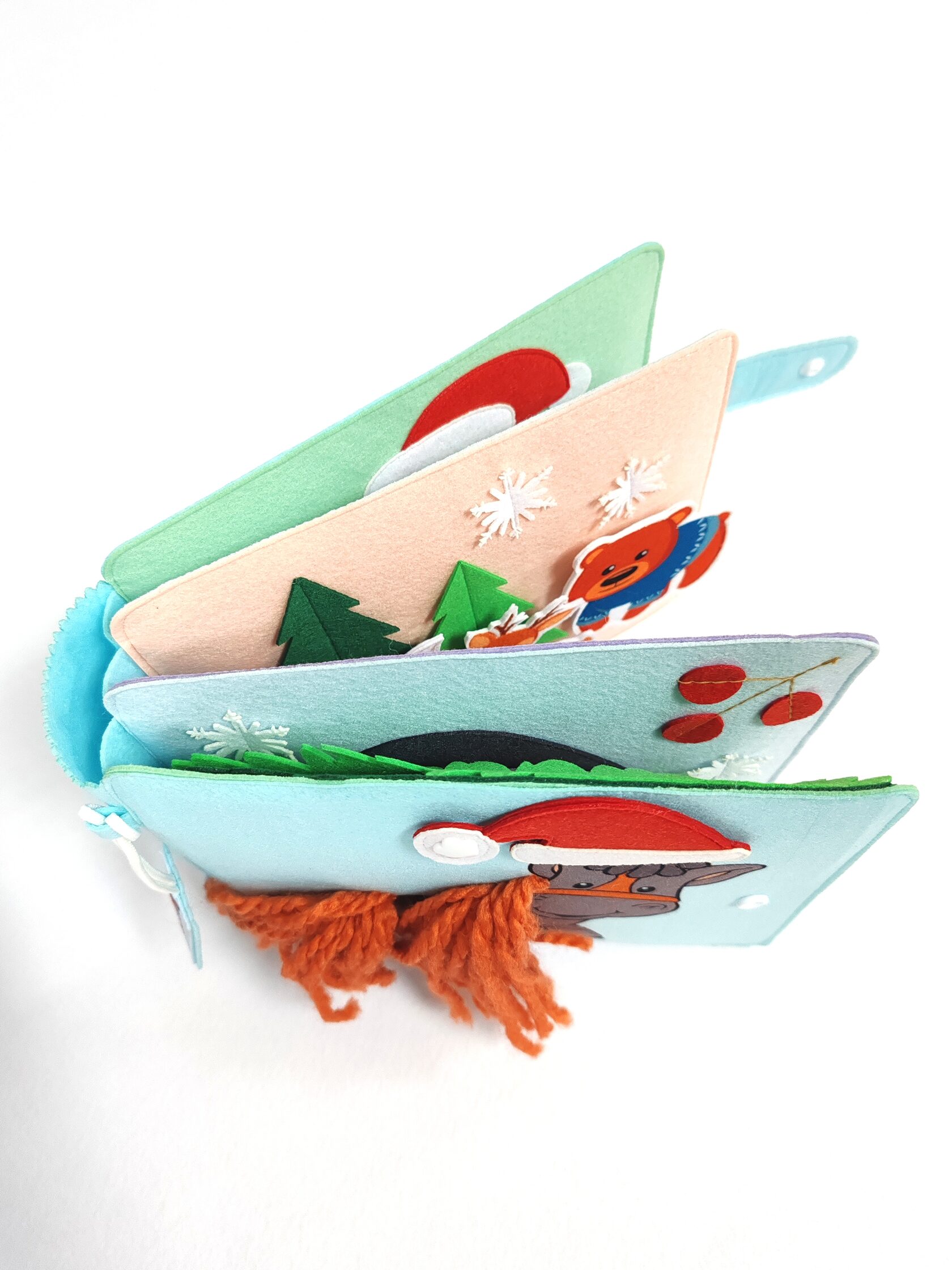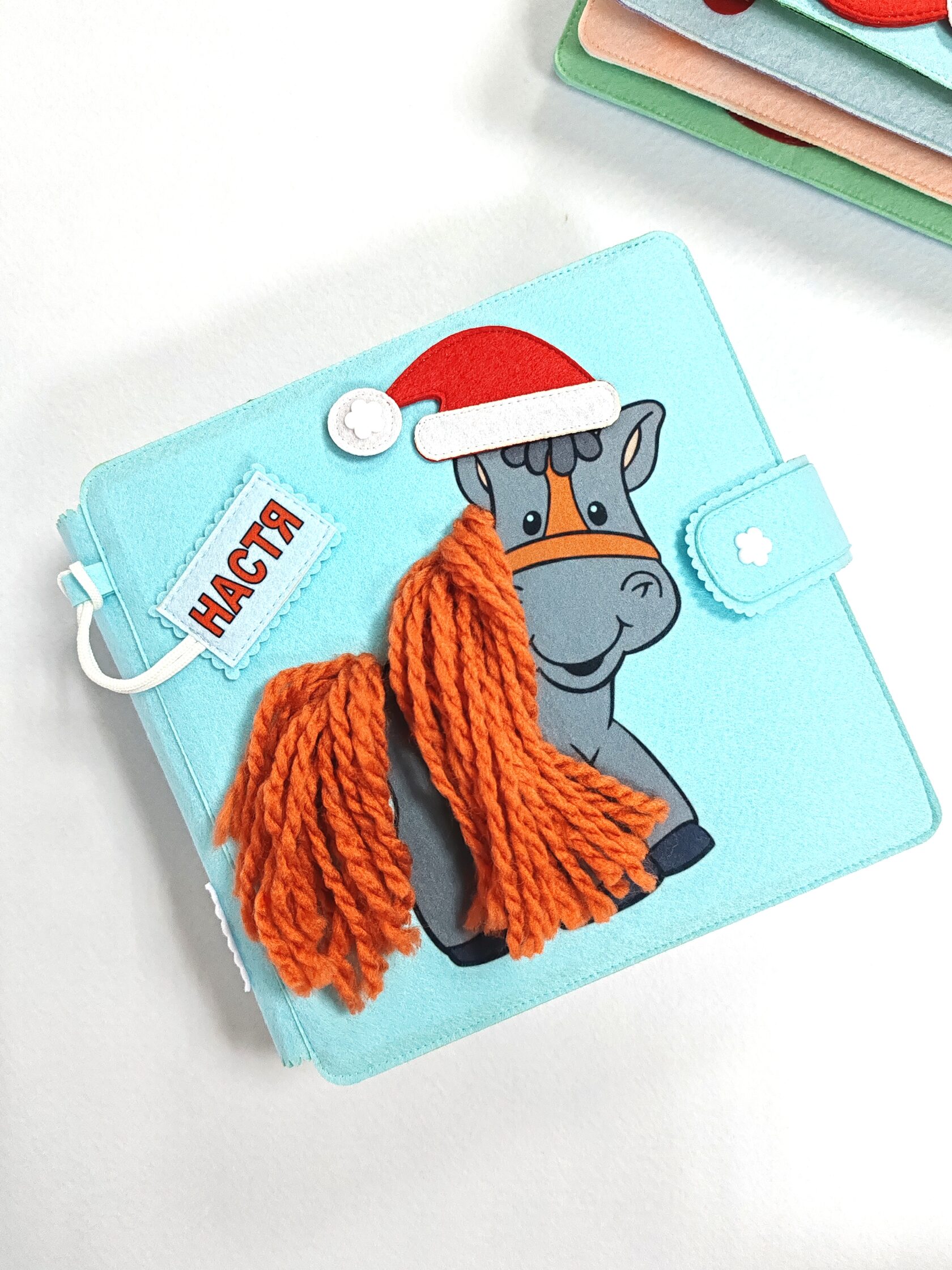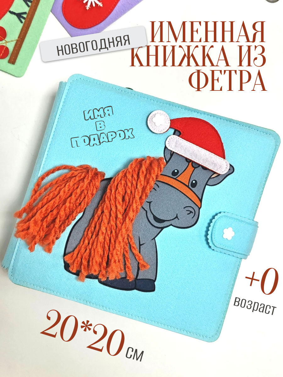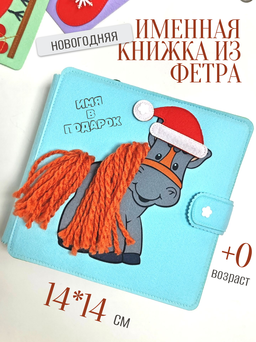 -ОГРАНИЧЕННОЕ КОЛИЧЕСТВО- Именная новогодняя книжка из фетра. Большой размер 20 на 20 см. В книжке собраны различные развивающие элементы: липучки, кнопки, молния, зеркало. Товар сертифицирован. Книжка подойдет на возраст от 0 до 3 лет