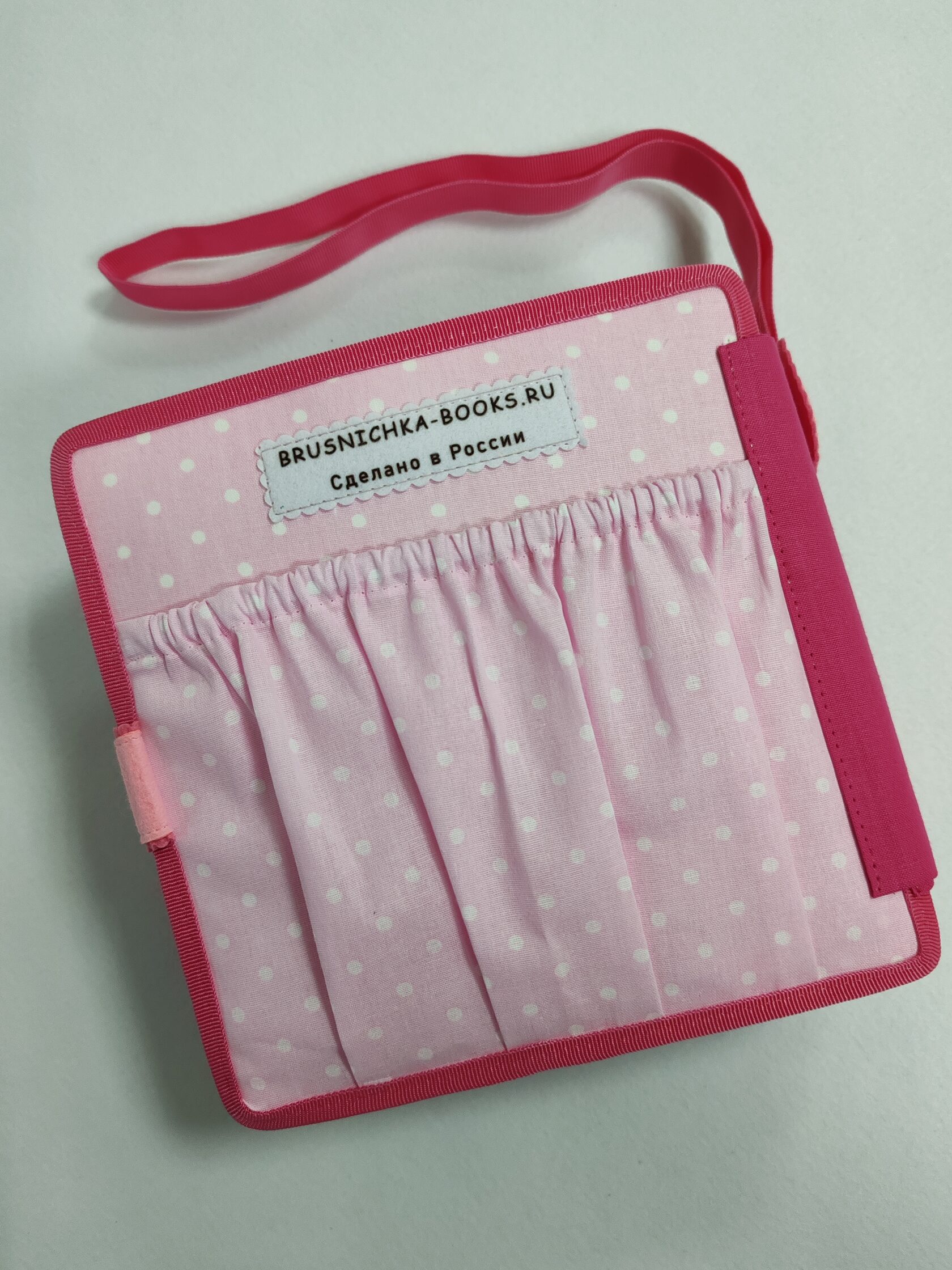 Книжка включает в себя съемный ремешок, который крепится к коляске, кроватке, в машине или просто удобно нести на плече.